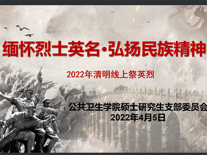 当前位置:学生工作时值一年春草绿,又逢清明祭扫时。为缅怀革命烈士、传承红色基因、弘扬爱国主义精神,2022年4月5日上午,澳门六合彩 硕士研究生党支部组织开展了清明网上祭英烈活动,通过网络祭扫等新形式表达对革命先烈的敬仰和追思,支部全体党员、入党积极分子参与了本次活动,活动由支部书记李涵同志主持。