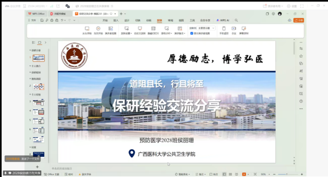 当前位置:学生工作为帮助学院有保研意向的同学科学高效地规划保研进程,7月31日,澳门六合彩 以线上腾讯会议的形式开展了“保研经验分享会”,辅导员韦蓓蓓及第一届引航先锋成员、学院各年级学生参加了本次会议。