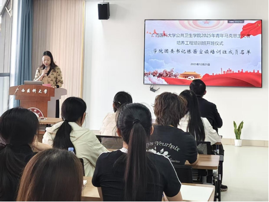 本次开班仪式标志着学院2025年“青马工程”培养工作正式启动。学院将持续深化青年思想政治引领,推动马克思主义理论与专业学习有机融合,着力培养有理想、敢担当、能吃苦、肯奋斗的新时代公共卫生事业青年人才。