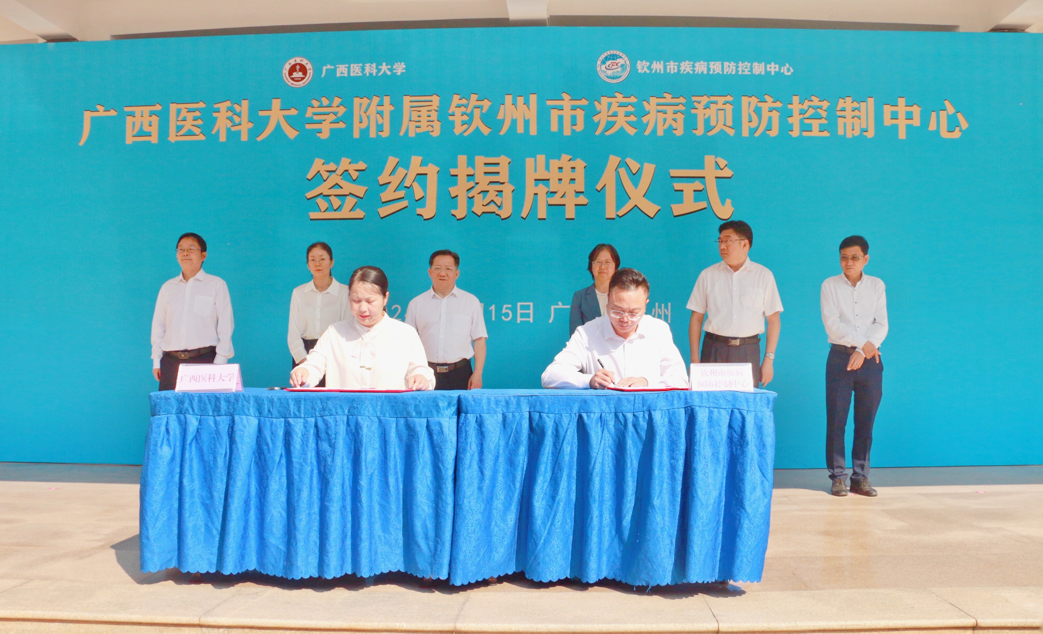 在学校90周年校庆即将到来之际,11月14日、15日,澳门六合彩 附属南宁市疾病预防控制中心、附属钦州市疾病预防控制中心签约揭牌仪式分别在南宁市和钦州市成功举行。此次签约揭牌,不仅是我校在公共卫生人才培养、教学科研和学科建设方面的创新性举措,更标志着我校与两地疾控中心的深入合作迈入了新阶段,此举为广西公共卫生事业的高质量发展奠定了坚实的基础。