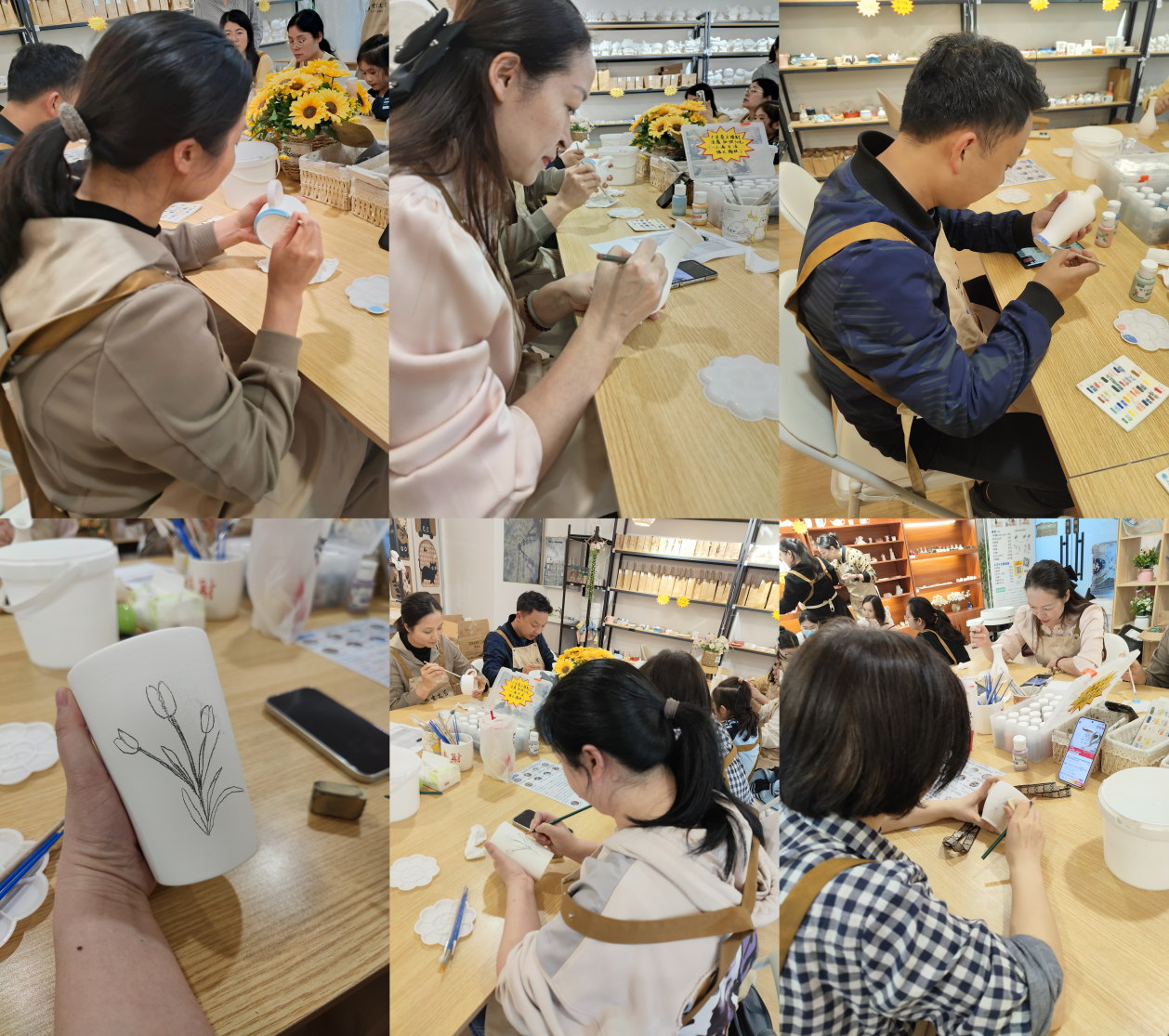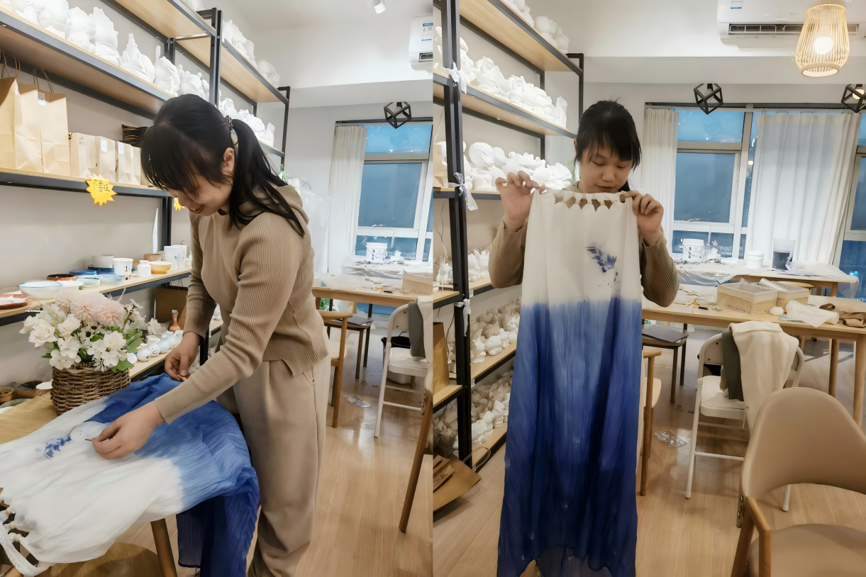 在专业老师的指导下,大家系统体验了揉泥、塑形、上色、捆扎等传统手工艺环节,沉浸其中,亲手创作出一件件兼具心意与创意的专属作品。陶艺作品将统一烧制留存,扎染成品则可现场带走,为美好的节日时光留下独特纪念。