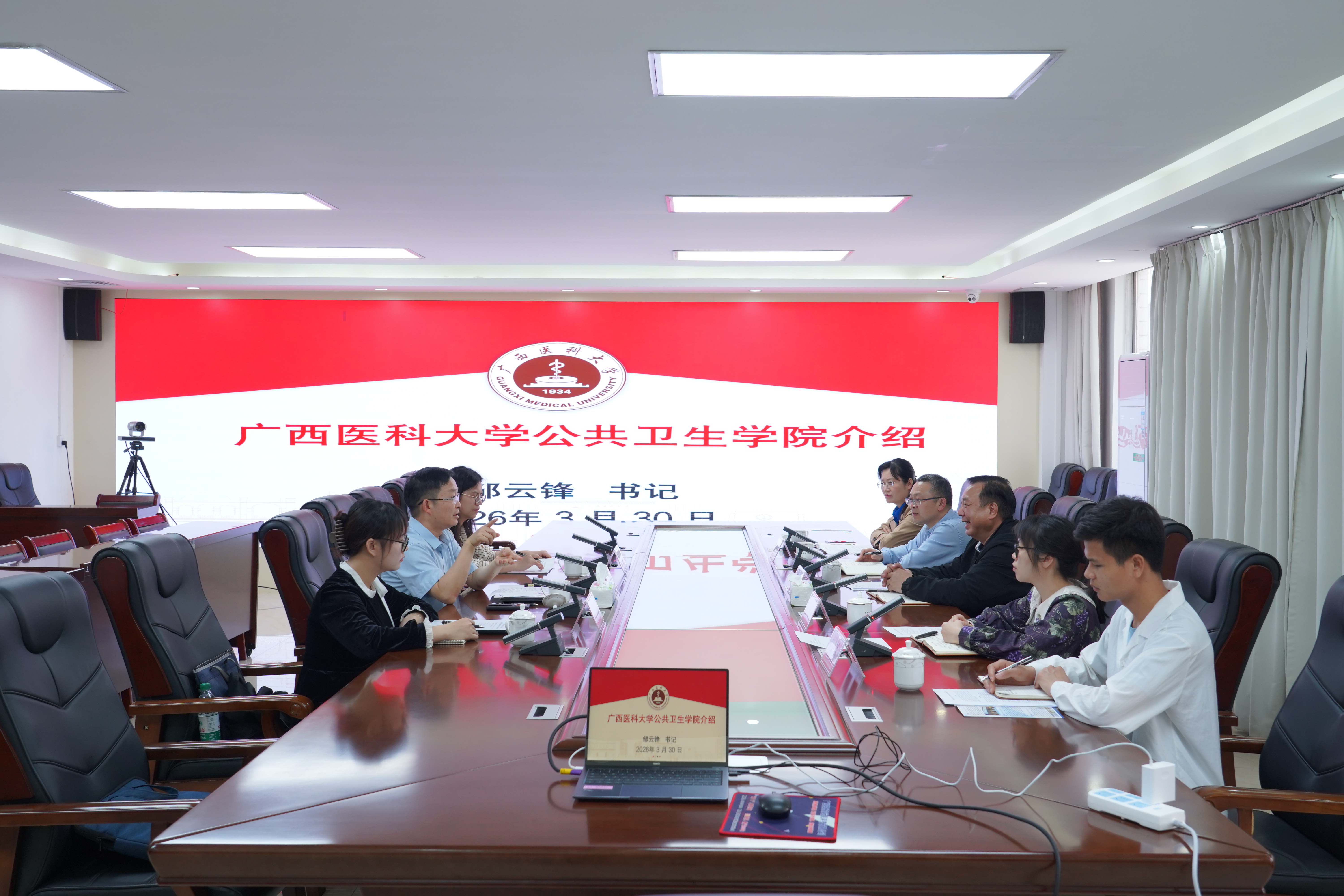 会上,澳门六合彩 邹云锋同志详细介绍了学院学科建设、科研成果、人才培养体系及2026届毕业生情况,重点推介了应届毕业生。贺州市疾控中心副主任李庆波、市卫健委党组书记覃恩先先后发言,介绍单位发展及人才建设等情况并与澳门六合彩 交换意见。覃恩先就校地合作提出建议,希望学院加大人才输送、深化联合培养、推进科研协作。澳门六合彩 结合自身优势,围绕就业对接、人才培养、科研合作等议题与对方深入研讨,达成深化合作共识,为拓宽毕业生就业岗位、优化育人模式奠定坚实基础。