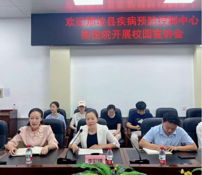 会上,唐凤副书记深入分析了当前的就业形势,鼓励广大毕业生主动下沉基层、服务基层,在实践历练中增长才干。同时,她还介绍了澳门六合彩 近年来毕业生就业整体情况,并就澳门六合彩 人才培养与用人单位需求对接等方面进行了交流。随后,李彩锦主任详细介绍那坡县基本概况,从人员配置、工作内容、人才需求等方面,全面解读县疾控中心的工作情况,并与同学们围绕基层疾控工作重点难点、职业发展路径、晋升机制及事业单位笔试面试备考等问题,进行了深入互动交流,现场解答学生疑惑。