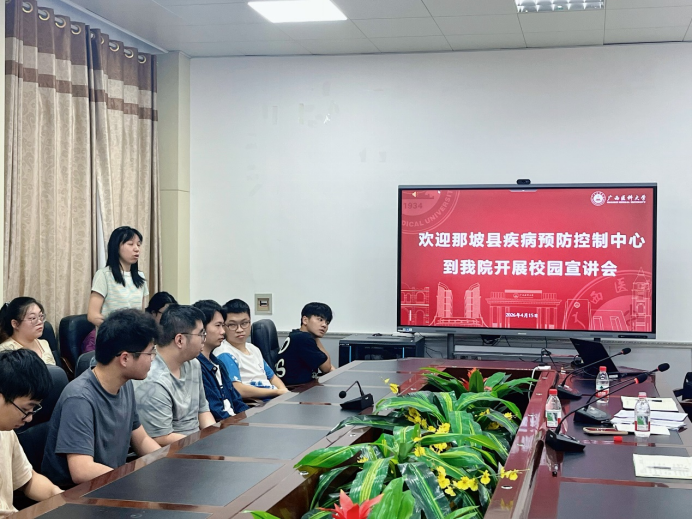 为帮助学生深入了解基层疾控工作,拓宽就业视野,4月16日下午,那坡县疾病预防控制中心到澳门六合彩 开展基层就业专题宣讲会。那坡县疾控中心主任李彩锦受邀主讲,学院党委副书记唐凤、负责就业工作辅导员及2026、2027届毕业生参加此次活动。